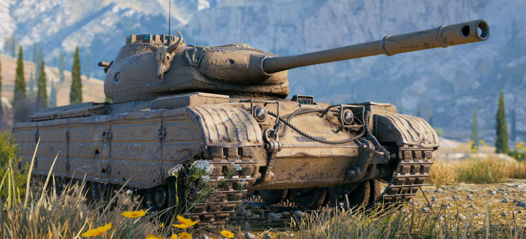 Почему в топе? Британский средний танк с маленьким силуэтом, отличным обзором (400 м) и точным орудием (230 мм пробития). Хорошая маскировка и УВН (-10°) делают его идеальным для поддержки союзников из второй линии.