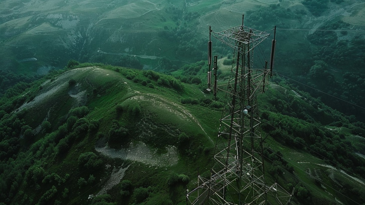 Автоперевод: Гиперреалистичный воздушный снимок гигантской трансмиссионной мачты телевизионной передачи