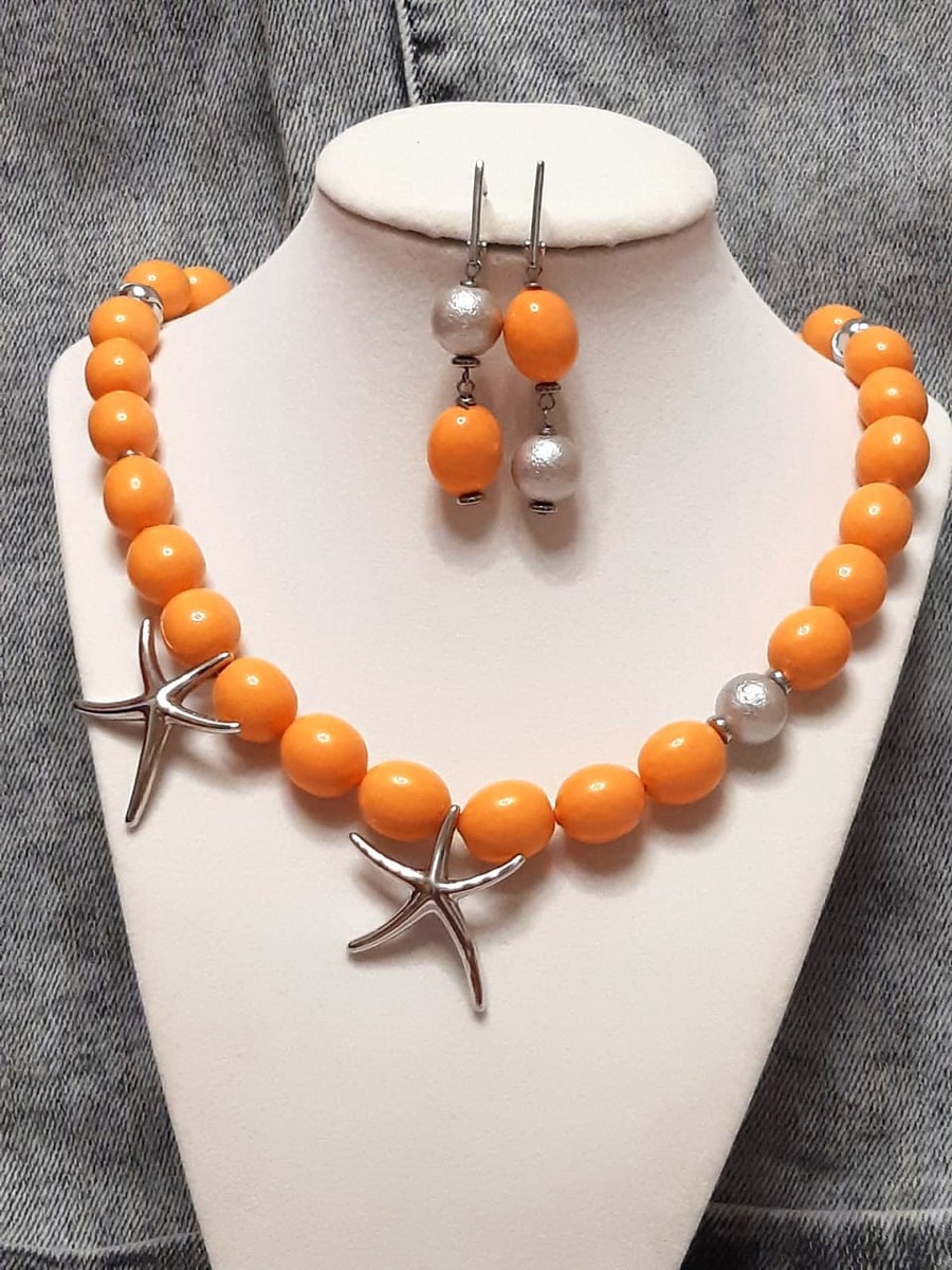Комплект Коралловый Цена 2600 р.+доставка Бусины жемчуг майорка оранжевые и серебристые, гематит, швензы имеют стойкое покрытие, гипоаллергенные. Длина колье 48 см Длина серьги (без швензы) 3 см Очень летний комплект, яркий, веселый. Серьги легкие, комфортные. #жемчугмайорка