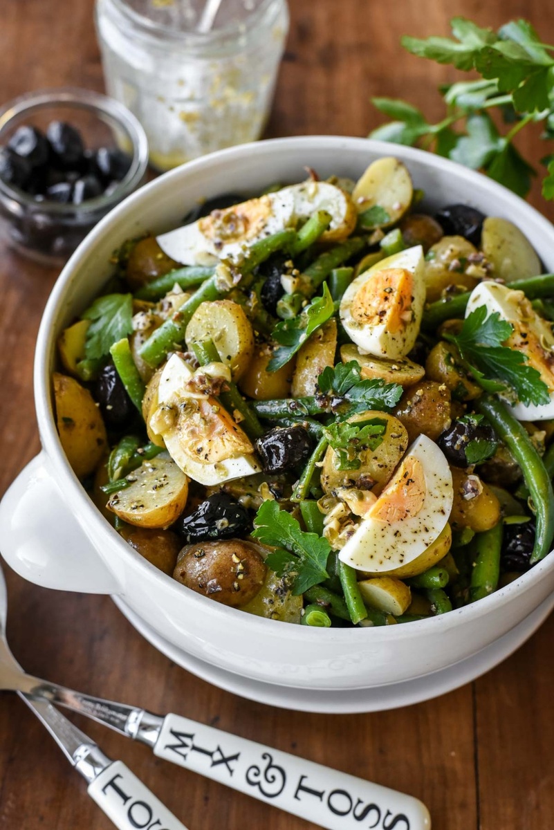 Салат из картофеля и стручковой фасоли по-французски с хрустящей зеленью и нежным картофелем — сытный, но лёгкий салат с насыщенным средиземноморским вкусом. Согласно французской традиции, его заправляют не майонезом, а вкусным, пикантным французским винегретом с солёными оливками, каперсами и свежей зеленью. Это отличный гарнир для посиделок или званых ужинов. Добавьте сверху варёные яйца, чтобы сделать его идеальным обедом в тёплую погоду!