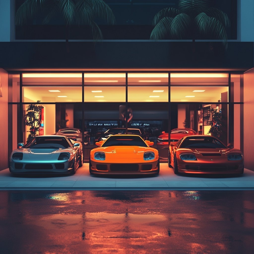 Создано на основе запроса: The image is designed in the three-dimensional (3D) visual style characteristic of modern mobile and simulation video games. The graphics are clean, bright and realistic, with sharp shapes, simplified details, rich color palette and good lighting. Shadows are soft, surface materials are rendered minimalistically but with enough realism to create an immersive effect. THREE CARS STANDING OUTSIDE A CAR DEALERSHIP Translated with DeepL.com (free version)