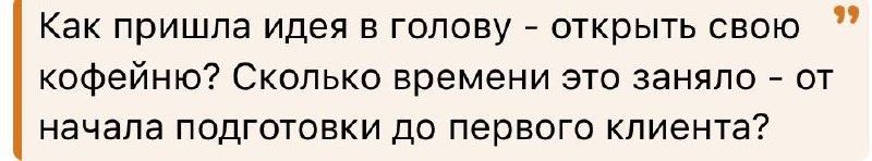 надоело работать 5/2 и постоянно ждать выходных, так идея и родилась кофейня потому, что моих тогдашних накоплений в 500к как раз хватало, и везде писали, будто это простой бизнес (врали) потратил 6 месяцев на максимальную информационную подготовку до того, как уволился с работы много читал, ходил по кофейням и расспрашивал, прошел простецкие курсы на деле этого мало, но по ходу дела разобрался сейчас кофейный рынок такой подготовки бы не простил после увольнения ещё 3 месяца и первые гости