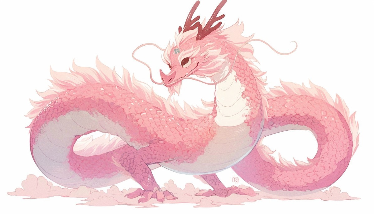 Создано на основе запроса: A cartoon Chinese dragon with pastel pink scales, a snakes long body, and two horns in the style of Disney's Raya movie. The long body and features a peaceful expression on its face. It has four legs, each with five toes. The background is white. --- Автоперевод: Китайский дракон с мультипликацией с пастельными розовыми чешуйками, длинным телом змей и двумя рогами в стиле фильма Диснея Рая. Какое твое мнение? 🤔 https://dzen.ru/id/65c0c65c86e4f837c27b24d7 #ИИ #AI #нейросеть #midjourney #art