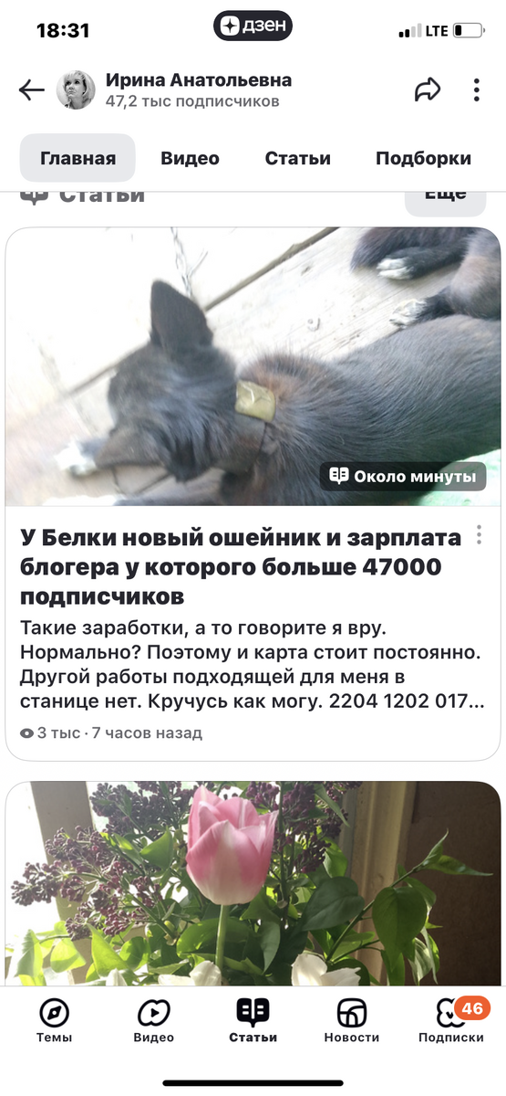 Хочу поделиться мнение о канале Ирина Анатольевна. Каналу около 7 лет, достаточно раскрученный, имеет 47.2 тыс. подписчиков. Впервые случайно наткнулась на канал году в 2021. Автор- женщина, на тот момент 48 лет, ИА, как ее сокращенно называют подписчики, рассказывала о своей жизни, о собаках, делилась нехитрыми кулинарными рецептами. Незатейливо, но вполне грамотно. Жила в Подмосковье, в Ступино, была замужем , с мужем прожила 29 лет, 2 дочери, внуки. Потом я этот канал читать перестала- ковид приключился, работа сутками, не до того стала. В этом году вновь Дзен нечаянно подкинул мне статью ИА. Оказывается, за эти годы в жизни автора произошло множество событий: умер муж, у ИА появился новый мужчина, Олег, ее первая любовь, с ним она уезжает в станицу Нижний Чир, что в Волгоградской области, с желанием жить у моря и « стариться красиво». Но что- то пошло не так: умирает Олег, появляется новый возлюбленный Сергей 1. Дом, в котором живет ИА , оказывается отключениям от электроэнерги