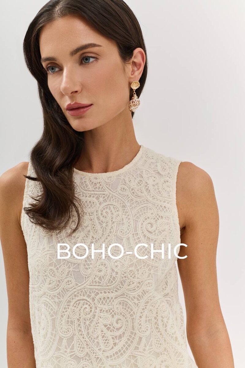 Лён, хлопок, вискоза — материалы, которые дышат вместе с вами. А кружева, вышивка и мягкая палитра оттенков добавляют в образы ту самую расслабленную элегантность бохо.