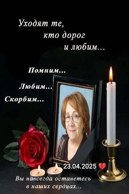 23.04.2025 💔 Не стало очень дорого мне человека... К сожалению я не смогла приехать на прощание (оно проходило сегодня. И узнала об этом я тоже сегодня...) Очень больно, когда уходят такие замечательные люди 💔 Наталья Николаевна была мне не просто первым учителем и единственным классным руководителем... Она всегда мне помогала во многих моих трудностях жизненных и в школе и после школы и до последнего... Всегда давала очень ценные и добрые советы. Очень сильно помогала преодолеть трудности в школе моим детям... Она была как вторая мама... 💔 Последние пару недель у меня в голове словно зудило, что нужно к ней съездить... Надо увидеться... Видимо было какое-то предчувствие... Но суета дел, не дала мне это сделать... Мы не успели ((( 💔 Очень сильно сожалению, что не успела с ней в последний раз увидеться... Царствия Небесного, Наталья Николаевна... 🙏