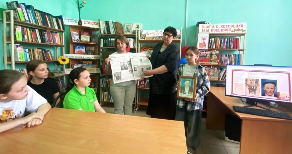 Жуковский отдел МБУК ПР «МЦБ» принял участие в ежегодной Всероссийской акции «Библионочь-2025». В этом году акция называлась «Свои герои», в честь этого библиотекарь провела вечер памяти «Мой дедушка герой» с обучающимися 5-7 классов ЖСОШ №22. В ходе мероприятия прозвучали стихотворения К. Симонова, М. Исаковского, С. Орлова, а Яна Тарасова вместе с мамой Юлией Александровной рассказали о прадедушке Николае Ананьевиче Зайцеве — участнике Великой Отечественной войны, а также Парада Победы 1945 года. Они принесли его фотографию, районную газету «Колос» и провели обзор статей, где говорилось о нем. Участники мероприятия завороженно слушали о грандиозном событии — Параде Победы 1945 года и о боевом пути Н.А. Зайцева. (Жуковский отдел МЦБ Песчанокопского района)