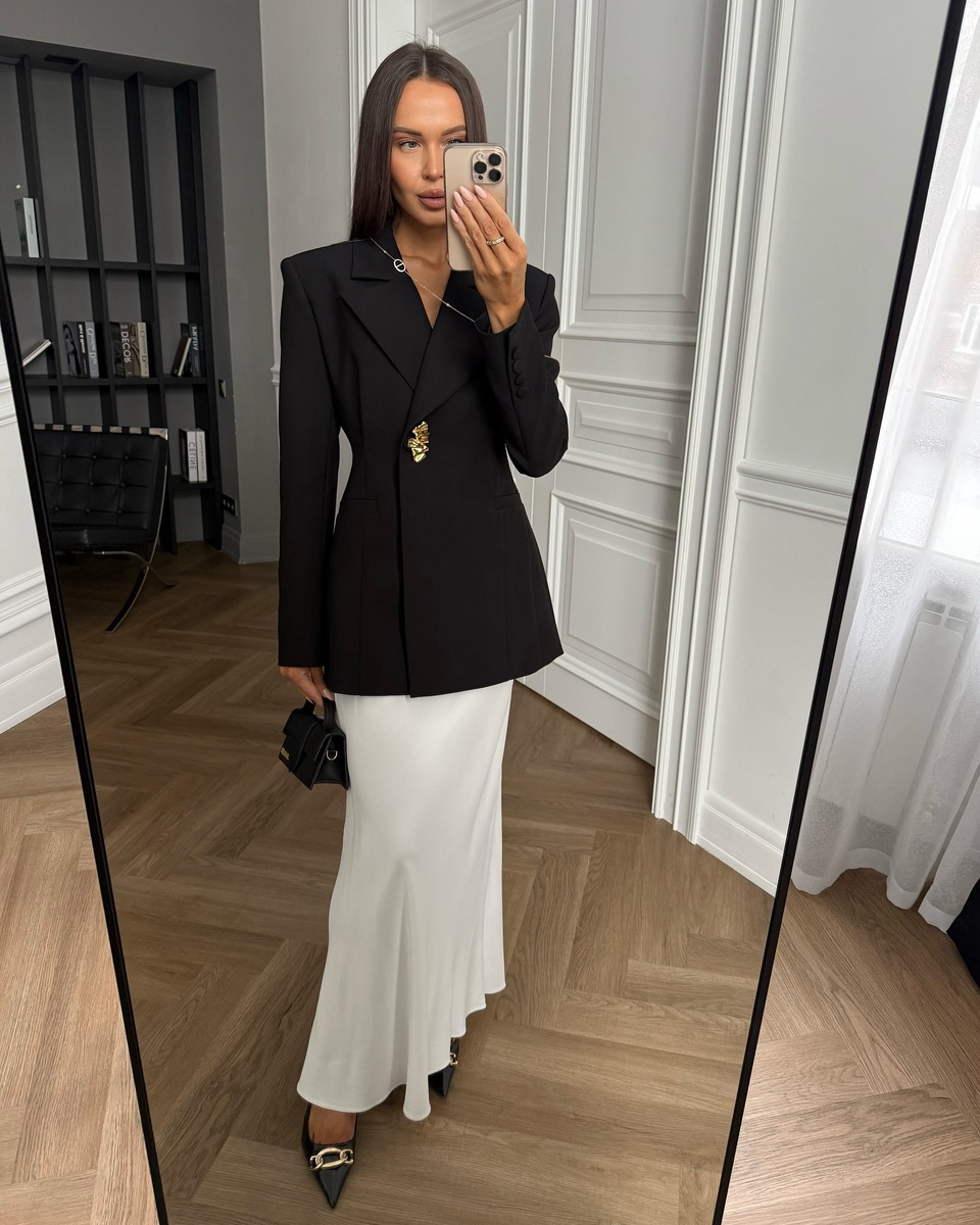 Создание утонченного ансамбля — это искусство, основанное на внимании к деталям и чувстве меры. Сегодня рассмотрим 12 вдохновляющих идей на весенний сезон, которые легко повторить. Черно-белые сеты не всегда выглядят строго и банально. Черный жакет удлиненного кроя отлично ладит с длинным платьем. Детали: компактный аксессуар из кожи, остроносые туфли. Кружевная одежда – само очарование! Соедините кружевную юбку миди с трикотажной майкой, вязаной кофтой и получится интересный весенний образ. Лакированные туфли бежевого оттенка создают эффект «бесконечных» ног, стройнят свою обладательницу. Чтобы визуально удлинить ноги, выбирайте брюки с высокой посадкой. Полосатая рубашка, джинсы с защипами, туфли, аксессуары и ничего лишнего! Юбка-карандаш в темных тонах также обладает стройнящим эффектом. Лонгслив с открытыми плечами придает ансамблю пикантную нотку. Классическая рубашка и юбка с запахом – комплект с «изюминкой». Если вы ведете активный образ жизни, лучше завершить сет обувью на низ