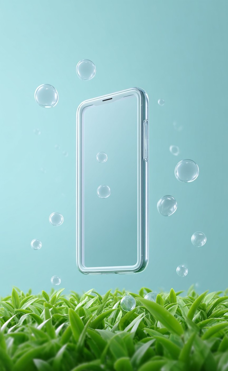 Создано на основе запроса: An image featuring green tea leaves and bubble shapes in a sky blue background. The main element of the poster design is a light gray, transparent Iphone mockup floating above a grassland, featuring soft edges. In the front view, surrounded by bubbles, creating a lively atmosphere, creating an elegant yet dynamic composition . --- Автоперевод: Изображение с листьями зеленого чая и пузырьковыми формами на небо синем фоне. Как тебе изображение? 🤔 https://dzen.ru/id/65c0c65c86e4f837c27b24d7 #ИИ #AI #нейросеть #midjourney #art