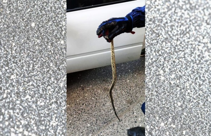 Обнаруживший под капотом своей машины такой пресмыкающийся «сюрприз» мужчина испугался и немедленно вызвал сотрудников центра. Приехавшие спасатели постучали по разным частям автомобиля, создав змее дискомфорт. И когда она выползла из моторного отсека, спасатели аккуратно поймали ее и посадили в банку.