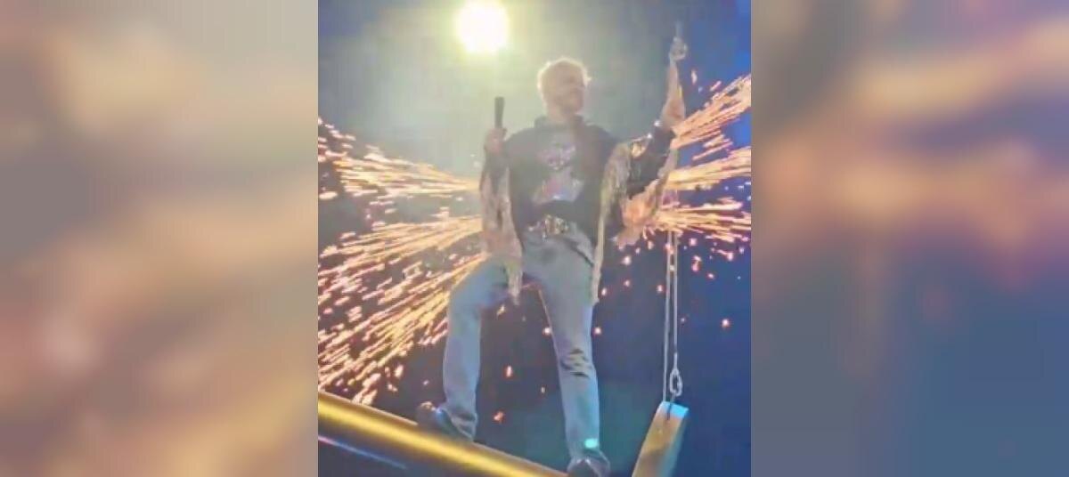 На записи с концерта видно, как Киркоров стоит на подвесной платформе — в метрах над сценой. В какой-то момент за его спиной включается пиротехника, создавая эффект крыльев. Но тут всё пошло не по плану. Артист начал кричать и трясти рукой, опасно балансируя на платформе. Номер завершился, когда эффектный костюм звезды перестал искриться, а его самого опустили на сцену.