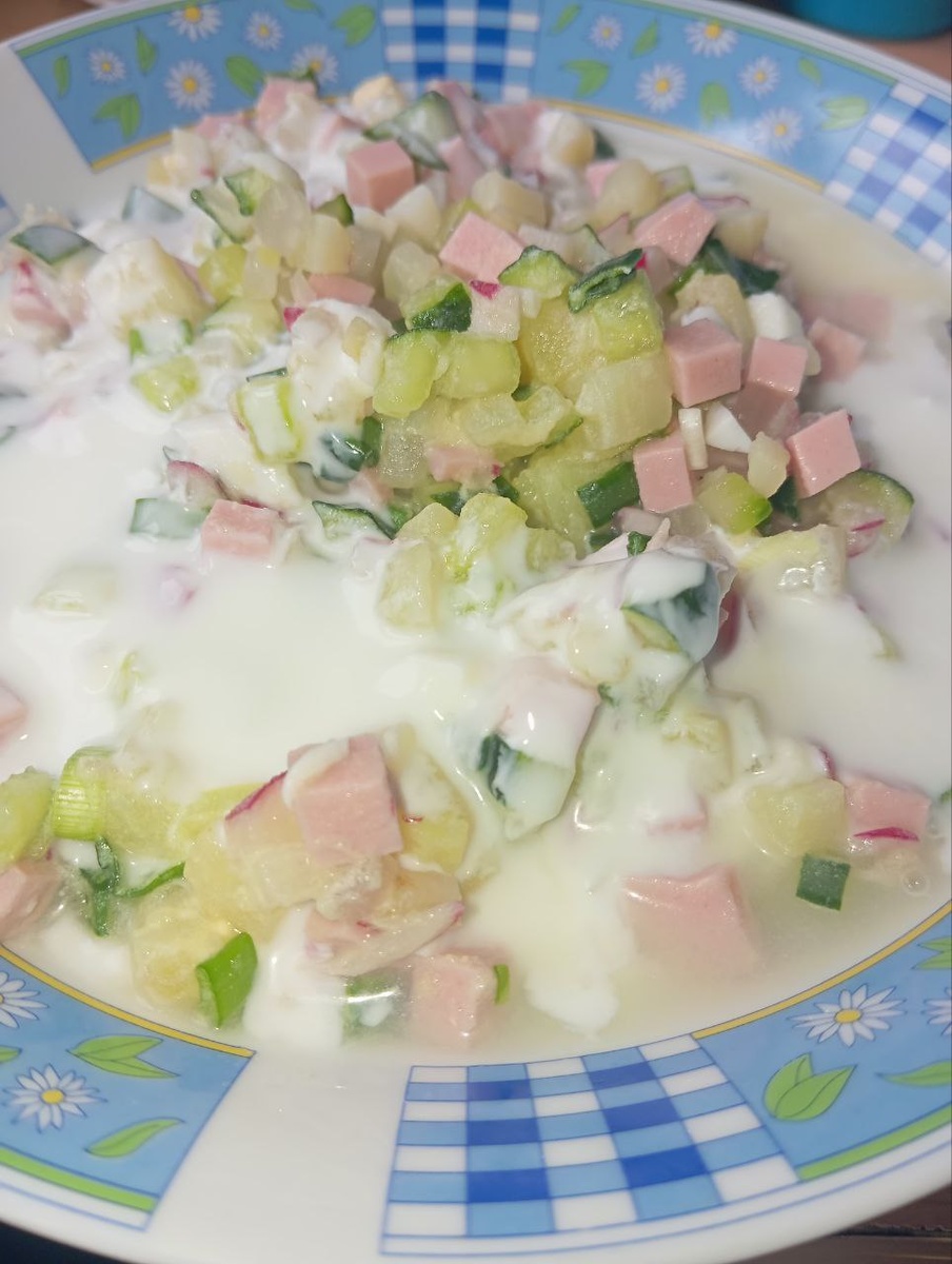 Всё, официально открыли сезон окрошки 🤭 Какой-то дурнойгениальный человек додумался сказать, что из-за стола надо выходить с чувством лёгкого голода 🙈 Я так не умею 🤷♀️😂 Объелась по максимуму 😅🤭 А сейчас пойду спать, если разрешат, конечно 🙈 Прекрасных вам выходных 🍀🍀🍀