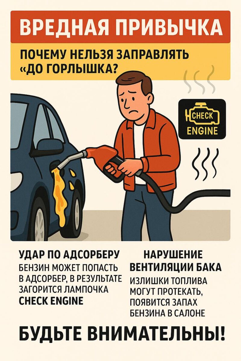 🚗💡 Вредная привычка: почему нельзя заправлять «до горлышка»?