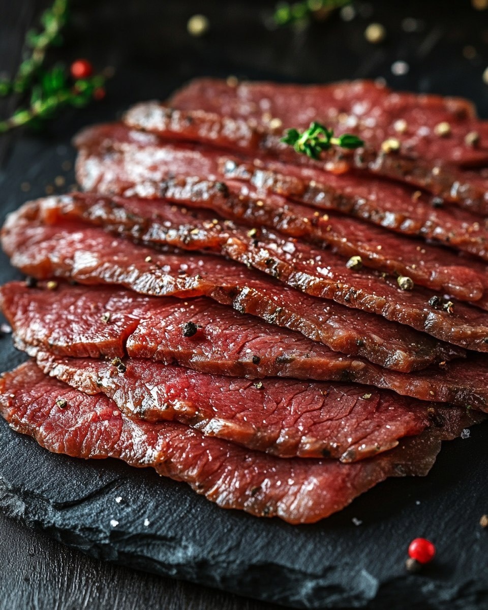 Создано на основе запроса: Title: Thinly Sliced Beef Recipes | Close-up Shot | EMOTION: realistic as possible, very realistic | TAGS: High-end food photography, clear composition, Realistic, Tasty, Yummy, mouth-watering, indulgent, gourmet, cuisine, recipe, homemade | CAMERA: iphone 15 pro.