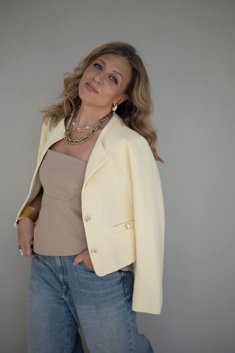 В продолжение про пуговицы, на этом жакете планирую перешить пуговицы, покажу, как переделаю.