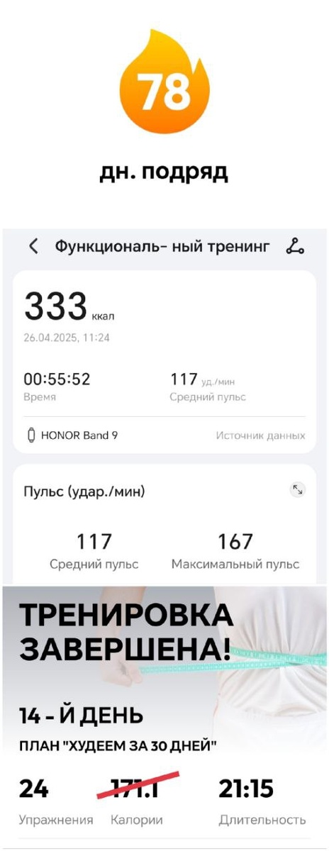 🏋️♂️ Упражнения. День 78. 🗓 26.04.25 💪 День ведения блога: 108 ⏱ 00:55:52 🏄♂️ 333 ккал 👌 Зарядка после вчерашнего ресторана это бесценные ощущения... 💪 Решил на постоянку добавить пресс к стандартном комплексу упражнений. Посмотрим, что из этого выйдет. ✍️ Рассказывайте о своих достижениях в коментах! #упражнения_дома 😎 Roman Legas | Life