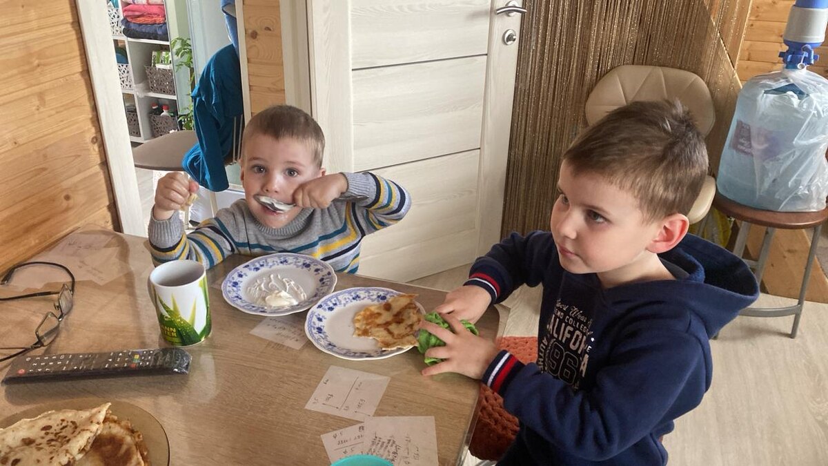 А у бабушки с дедушкой всё отлично. Пацаны вели себя нормально, хотелось бы так думать😂, ещё не узнавала. Поели блинов со сметанкой, или просто сметанку как Даня. Пошумели, поголдели, и даже порисовали.
