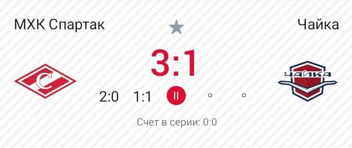 В хоккее тоже перерыв после второго периода. Наша команда в два раза перебрасывает хозяев, но пока на три шайбы «Спартака» «Чайка» ответила голом Ильи Жаркова.