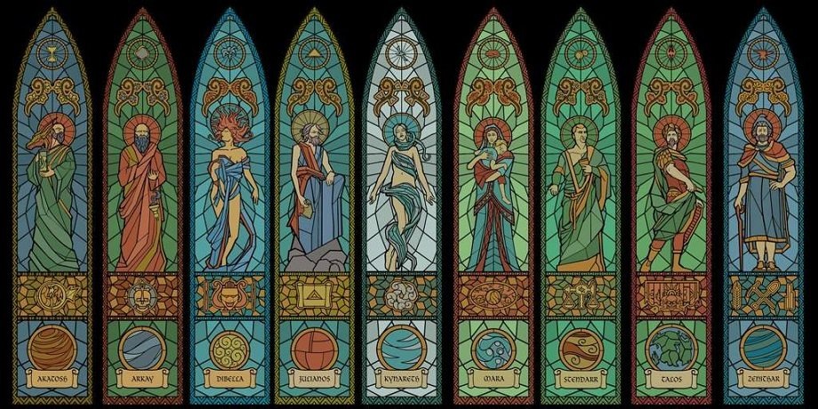 Девять Божественных (они же Девять Божеств) – официальный пантеон Империи, состоящий из восьми изначальных богов-Аэдра плюс один бог-герой, возведённый в божество. На бумаге всё благочестиво: драконьи боги времени, матери любви, покровители мудрости – полный набор добродетелей. Но за парадным фасадом этой веры скрывается удивительная мешанина компромиссов, политической целесообразности и постоянных идеологических конфликтов. В этом обзоре — разбор культа Девяти Божественных: от его сомнительных истоков и эволюции до региональных вариаций в разных провинциях Тамриэля, включая противоречия, которые раз за разом трещат по швам в этой религии.