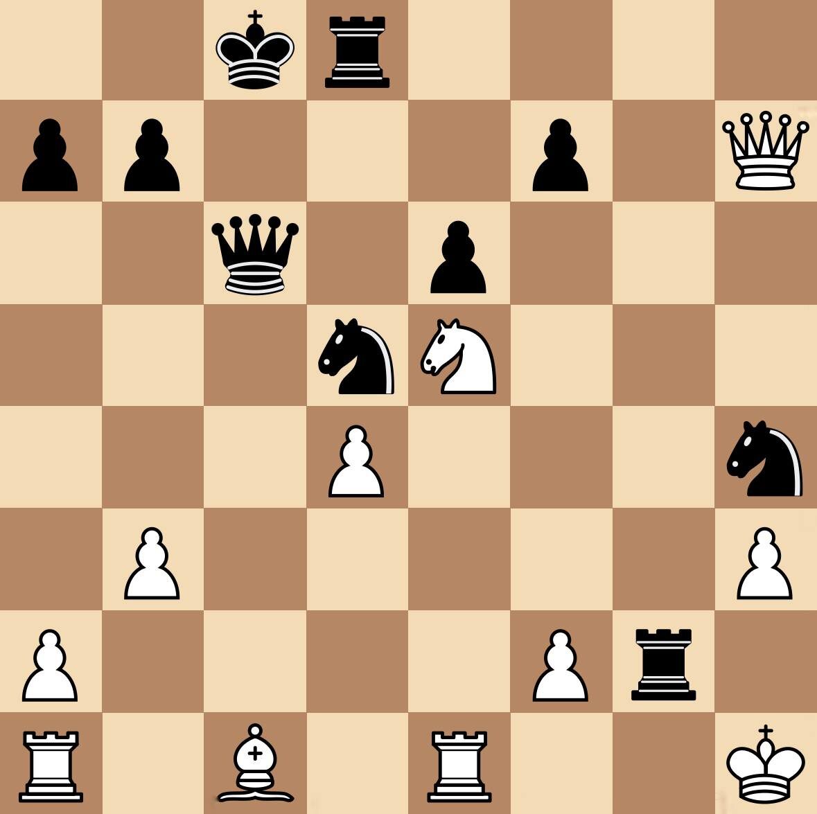 Задача дня🧩 Толуш — Флор Киев, 1944 (вариант из партии) На диаграмме — положение после 24-го хода белых ♟ 🧩Ход черных. Найти сильнейшее продолжение, ведущее к решающему атакующему перевесу🤔 (Редкая картина: ладья и два коня вторглись в лагерь противника, и, несмотря на обилие фигур, белые не могут спастись от простого мата.) Решать будем?) Ждём ваши ответы 🤗
