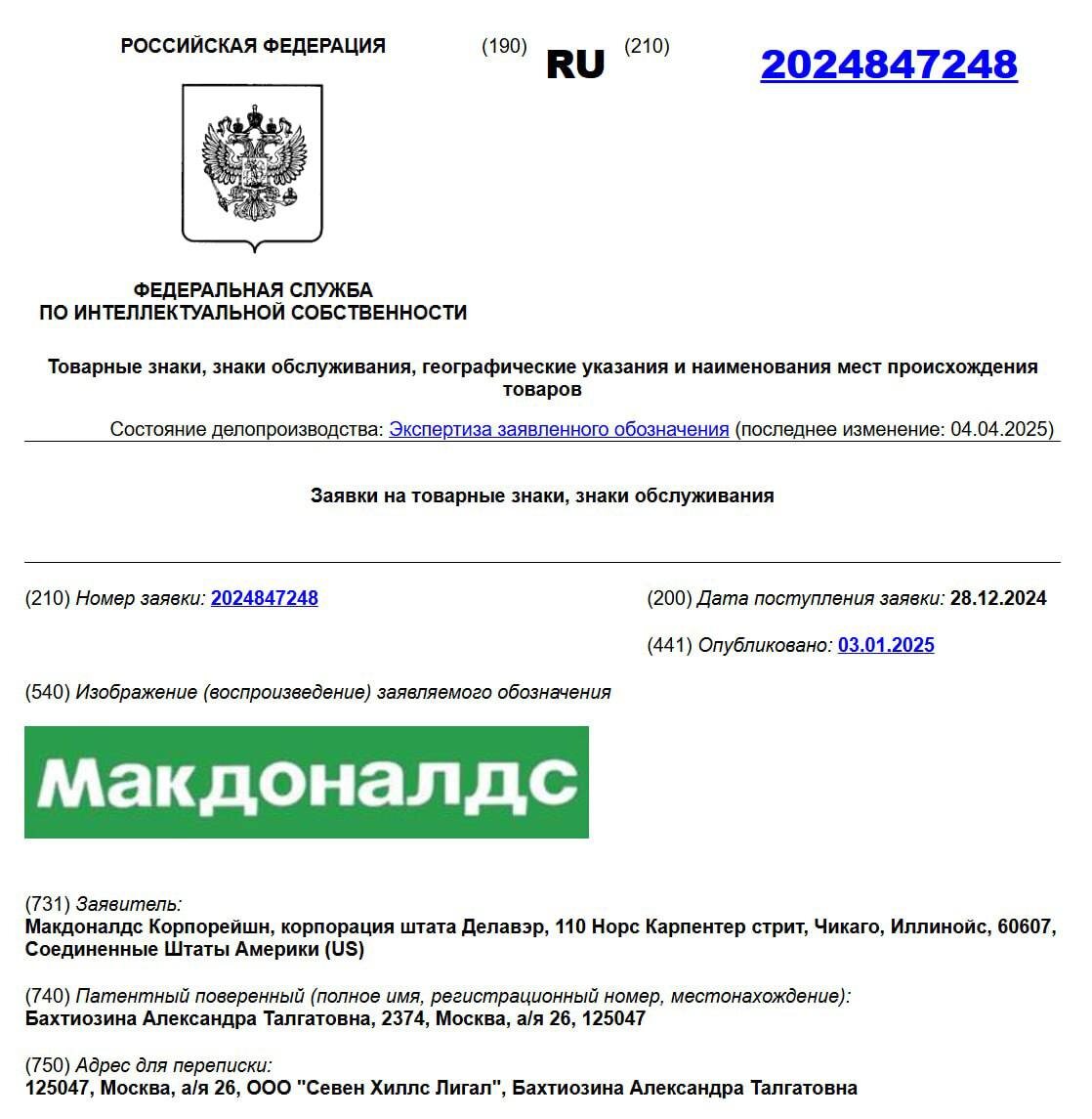 Американская корпорация McDonald’s подала заявку в Роспатент на регистрацию товарного знака для работы в сфере питания, ресторанного бизнеса и доставки. Об этом сообщили официальные источники. По мнению экспертов, шансы на успешную регистрацию достаточно высоки: несмотря на уход с российского рынка в 2022 году, McDonald’s сохранил за собой права на использование своих основных брендов в стране. Пока неизвестно, в каком формате компания планирует возобновить работу — под привычным логотипом или в виде новой франшизы. Однако само обращение в Роспатент говорит о серьёзных намерениях международной сети восстановить присутствие в российском сегменте общественного питания. Напомним, в 2022 году McDonald’s продал бизнес в России с правом обратного выкупа в будущем. Сейчас сеть ресторанов, открытых на месте бывших точек McDonald’s, работает под брендом “Вкусно — и точка”.