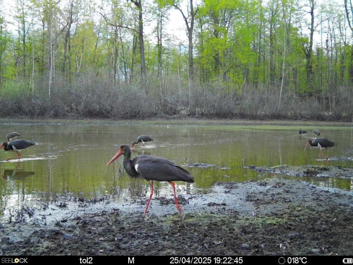 В Окском заповеднике на мелководном озере фотоловушка зафиксировала семь особей черного аиста. Этот вид, занесенный в Красную книгу России, считается редким и скрытным. В отличие от белого аиста, который предпочитает селиться рядом с человеческим жильем, черный аист избегает людей и строит гнезда в труднодоступных местах. Черные аисты выбирают заповедные территории, где их не тревожат, для гнездования. В Рязанской области они встречаются в северной, мещерской части, включая Окский заповедник и национальный парк "Мещерский". По оценкам специалистов, в регионе гнездится около 20 пар этих редких птиц.