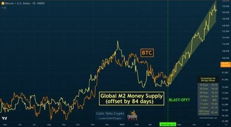 Что происходит с графиком Global M2? Разбираемся Видите тоже резкий всплеск на графике Global M2 (см. график 1)? Коротко: мощный рост глобальной ликвидности действительно подтверждается, и на фоне недавнего подъема BTC выше $95,000 мы идём по сценарию как никогда уверенно. Чтобы понять, что вызвало этот резкий скачок на графике M2, я прошёлся по всем странам, входящим в расчёт Global M2. Оказалось: все страны выглядят нормально, кроме одной — Индии. Только Индия показала эту аномалию в данных. Что это было — баг TradingView, ошибка их источника данных или реальное изменение методики расчёта М2 в Индии — пока неизвестно. Официальных сообщений о пересмотре M2 в Индии я не нашёл, что наводит на мысль, что это, скорее всего, баг. При этом я смог подтвердить это изменение данных по Индии и за пределами TradingView (см. график 2). Но тот источник, возможно, использует те же ошибочные данные, так что окончательных выводов делать пока рано. Интересный момент: визуально кажется, что М2 И