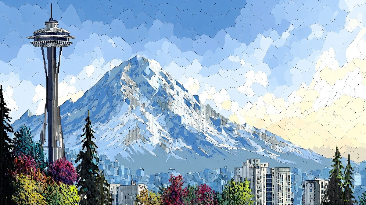 Создано на основе запроса: Seattle, Space Needle, with Mt. Rainier in the background, voxel art --- Автоперевод: Сиэтл, космическая игла, с горами Рейнир на заднем плане, воксельское искусство Классно вышло? 🤔 https://dzen.ru/id/65c0c65c86e4f837c27b24d7 #ИИ #AI #нейросеть #midjourney #art