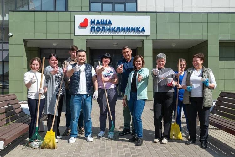 Также субботник прошел на территории клинической больницы и во всех поликлиниках городского округа.