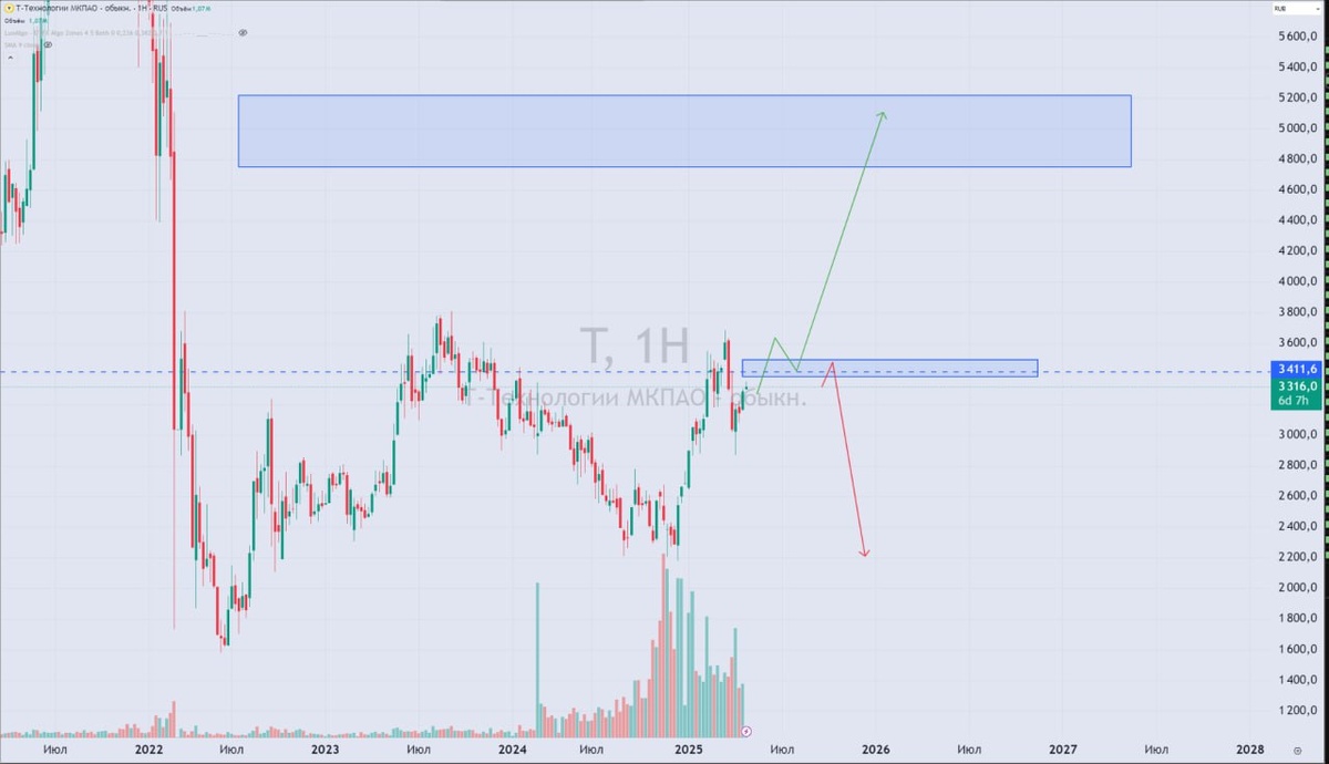 $TCSG Тинек на очень важном уровне. Как говорится пан или пропал. К счастью или сожалению но наиболее вероятным остается сценарий с красной стрелочкой. Для позитива нужен закреп выше 3412