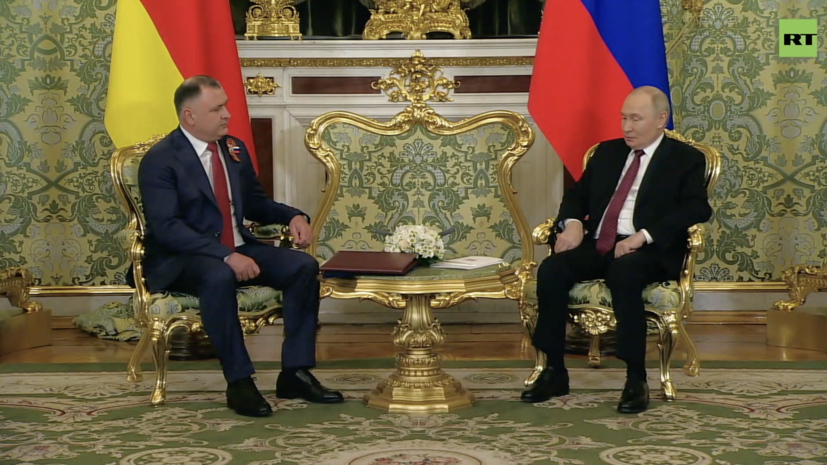В субботу, 10 мая, Владимир Путин провёл в Кремле встречу с президентом Южной Осетии Аланом Гаглоевым. RT вёл прямую трансляцию.