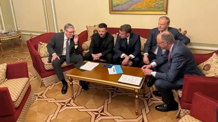 Коалиция немощных, но страждущих собралась в Киеве. "Коалиция желающих" объявила России ультиматум. Канцлер Германии Фридрих Мерц, президент Франции Эммануэль Макрон, премьер-министр Польши Дональд Туск и премьер-министр Великобритании Кейр Стармер заявили, что "Россия должна признать бесперспективность продолжения этой войны и поэтому согласиться на прекращение огня", а не то!... А не то, эти люди грозят опять ввести свои "адские санкции", от которых, очевидно, они сами уже не оклемаются. "Если Путин не согласится с этим предложением, то Украина не только получит дальнейшую поддержку, но и последует следующий шаг, будет введён ещё один пакет санкций, который уже готовится в Европейском Союзе", - заявил канцлер страны, которая в ХХ веке уже развязывала мировые войны. Кроме того, Мерц объявил о том, что новое федеральное правительство больше не будет публиковать информацию о военной помощи Украине: "Под моим руководством дебаты о поставках оружия, калибрах, системах вооружений будут вын