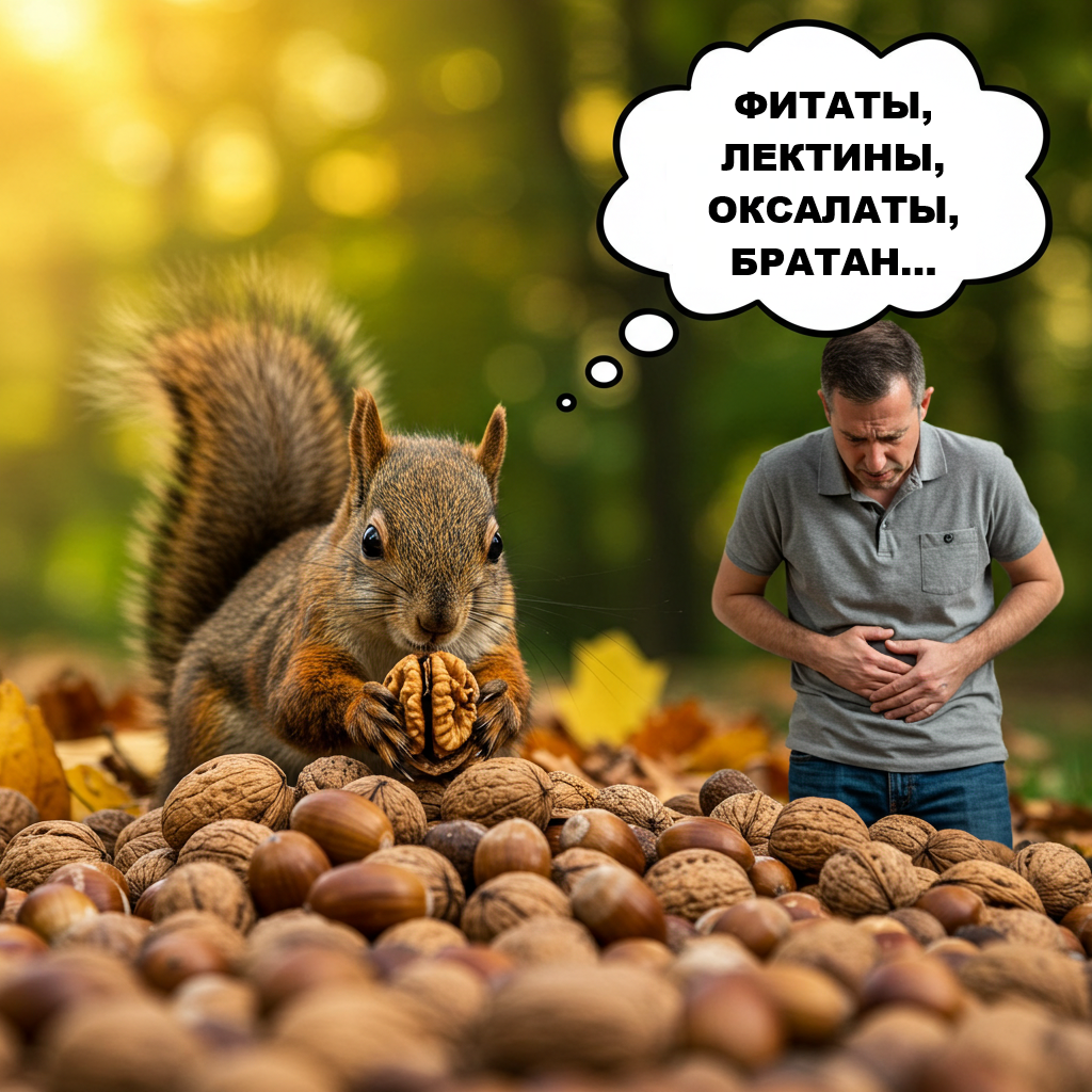 Несмотря на распространенное мнение о безусловной пользе орехов, глубокий анализ их биохимического состава и потенциального воздействия на метаболизм человека выявляет ряд серьезных вопросов. Наличие антинутриентов, таких как фитаты, лектины и оксалаты, дисбаланс жирных кислот и неоптимальный аминокислотный профиль белка могут ограничивать или даже нивелировать их декларируемую питательную ценность. В контексте карниворного подхода, ориентированного на метаболическую адаптацию человека к пище животного происхождения, орехи представляются скорее потенциальным источником метаболических проблем, чем незаменимым "суперфудом". Возможно, пришло время пересмотреть наше отношение к орехам и признать, что их "полезность" может быть значительно преувеличена, особенно в сравнении с биодоступными и полноценными нутриентами, содержащимися в продуктах животного происхождения. Оставьте орехи тем, чья физиология лучше приспособлена к их перевариванию и усвоению — для метаболизма человека существуют более оптимальные источники питания.