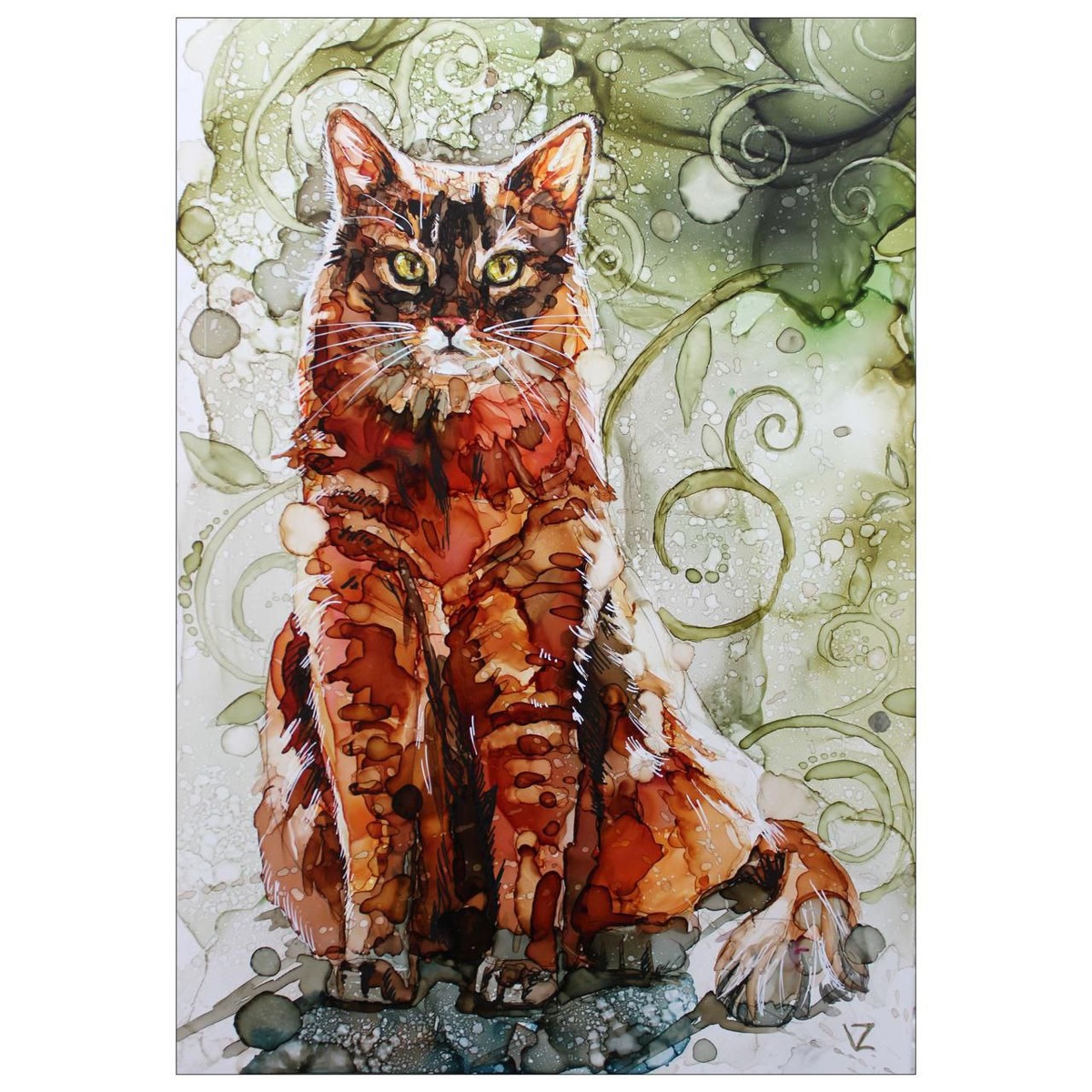 Работа А4-формата нарисована спиртовыми чернилами.