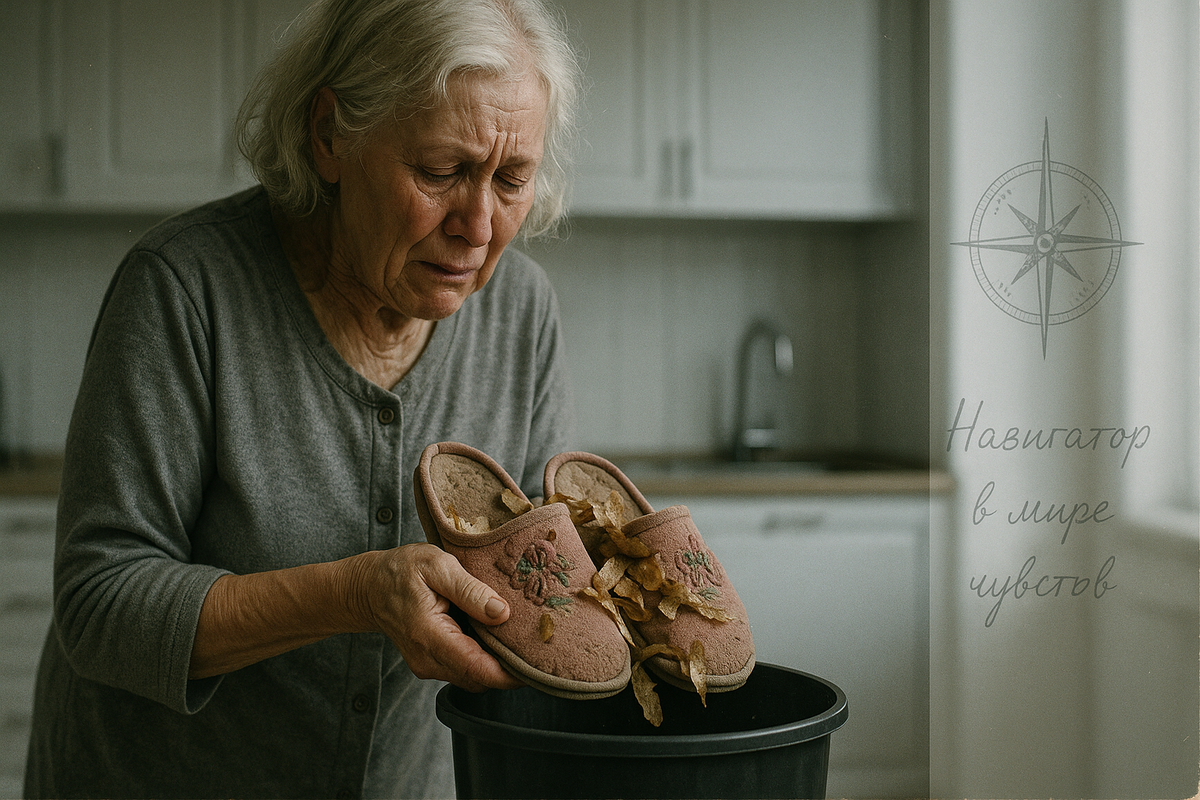 Я всегда думала, что умру в своём доме. А умерла я вчера утром — когда увидела в мусорном ведре свои тапочки. Розовые, с вышивкой, мягкие. Тридцать лет назад Павлик, мой сын, подарил их мне. «Мам, чтобы ножки не мёрзли». А теперь Оленька, невестка, выбросила их — «портят интерьер прихожей». Стою над ведром, достаю их оттуда, из-под картофельных очистков. И реву. В семьдесят два года я рыдаю над мусорным ведром из-за старых тапочек.