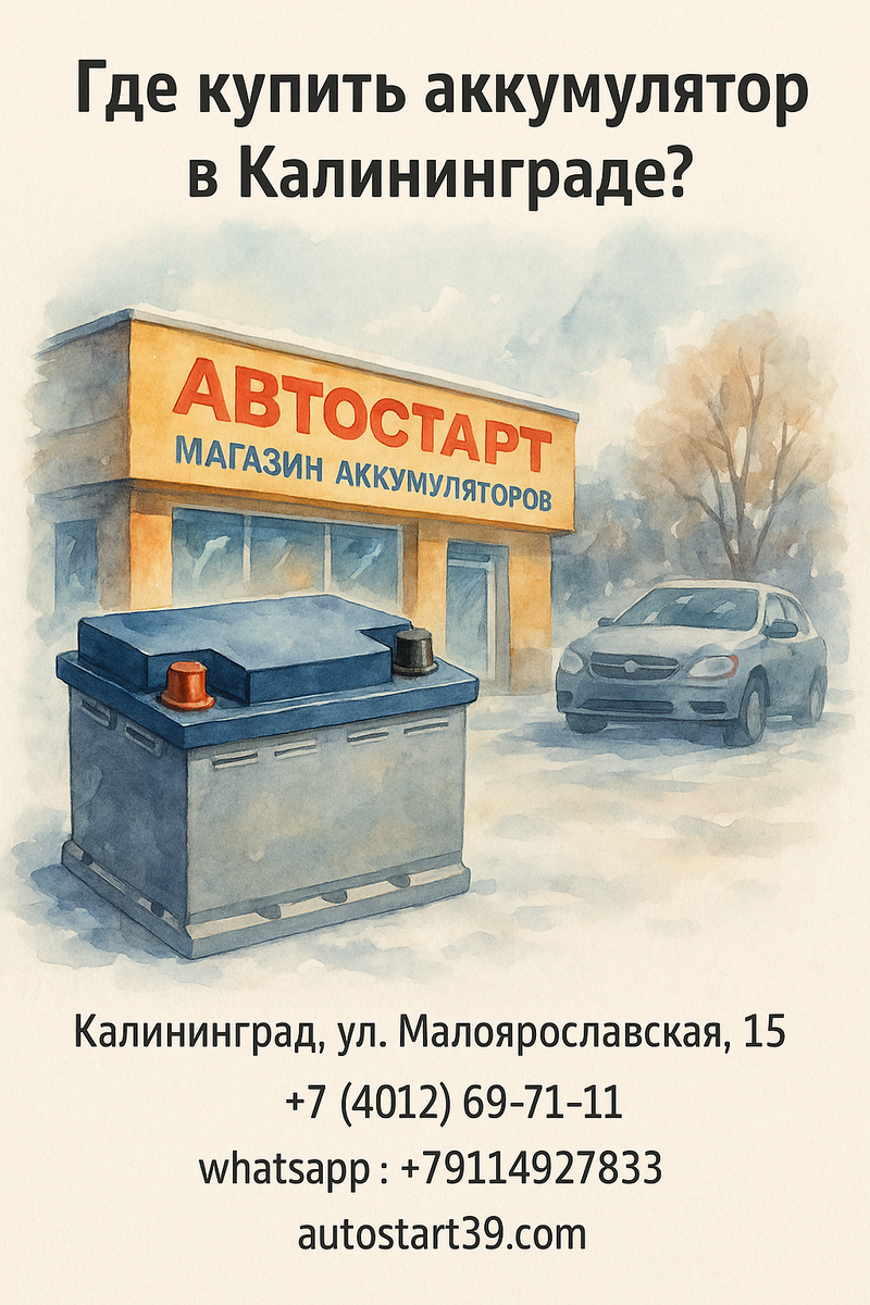 Аккумулятор — это сердце автомобиля. Именно он отвечает за запуск двигателя, питание электроники и устойчивую работу системы при любых температурах. Но когда батарея начинает «чудить» — крутит слабо, просаживает фары или вовсе не держит заряд — пора принимать меры. Встает логичный вопрос: где купить аккумулятор в Калининграде, чтобы не переплатить, не нарваться на подделку и быть уверенным в надёжности? Разбираемся вместе с экспертами магазина Автостарт. Автомобилисты в Калининграде сталкиваются с довольно влажным климатом и нестабильными зимами. В таких условиях аккумуляторы изнашиваются быстрее. Вот несколько тревожных признаков: Если вы отметили хотя бы 2 пункта — самое время ехать за новым аккумулятором. Перед покупкой нужно определиться с типом батареи: В Автостарте вы найдёте все эти типы — под любые задачи, с полной консультацией и установкой. Каждой машине нужен аккумулятор с определёнными параметрами: В магазине Автостарт подберут батарею под конкретную марку автомобиля — с у