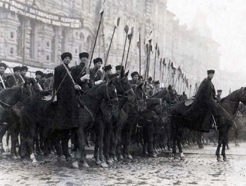 От военного парада 7 ноября 1927 года до выступлений команды по джигитовке Кремлёвской школы верховой езды Друзья, мы продолжаем цикл публикаций, посвященных конным церемониалам. 7 ноября 1927 года весь Советский Союз с воодушевлением отмечал первое десятилетие Революции. На Красной площади прошел юбилейный парад, особенностью которого стала лавина всадников - это были казаки. В десятую годовщину Октября в столице были запланированы сразу две праздничные манифестации: официальная - на Красной площади, и организованная оппозицией, которая могла завершиться настоящим переворотом. В такой тревожной обстановке целый полк преданных джигитов мог сыграть решающую роль. В дальнейшем казаки не раз участвовали в параде вплоть до 1945 года, а затем десятилетиями главная площадь страны не слышала топот копыт и ржанья золотистых казачьих коней, пока Кремлёвская школа верховой езды не стала организатором конной программы в рамках Международного военно-музыкального фестиваля «Спасская башня»! По