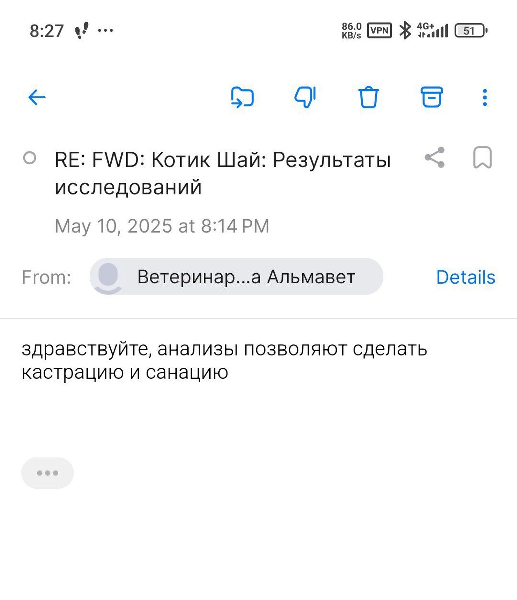 Шая берут на операцию. Предварительно назвали стоимость 12к за санацию и 2к за кастрацию. Это очень бюджетно. Чтобы ограничиться одним наркозом, кастрацию имеет смысл сделать сразу. На данный момент собрано 5к. Сейчас он находится на платной передержке с медуходом, так как вчера у него кровь из дёсен просто капала, а обрабатывать рот он не даёт. Было бы неплохо пересдать анализы, чтобы посмотреть динамику, но сейчас главное сделать операцию. Если вы готовы стать финкуратором для Шая, пожалуйста, напишите мне в личные сообщения. Ему в дальнейшем также нужен будет регулярный контроль анализов, а шанс, что он обретёт любящего и ответственного хозяина, который готов заниматься поддерживающей терапией для него, растаял как снег, на весеннем солнышке 😢