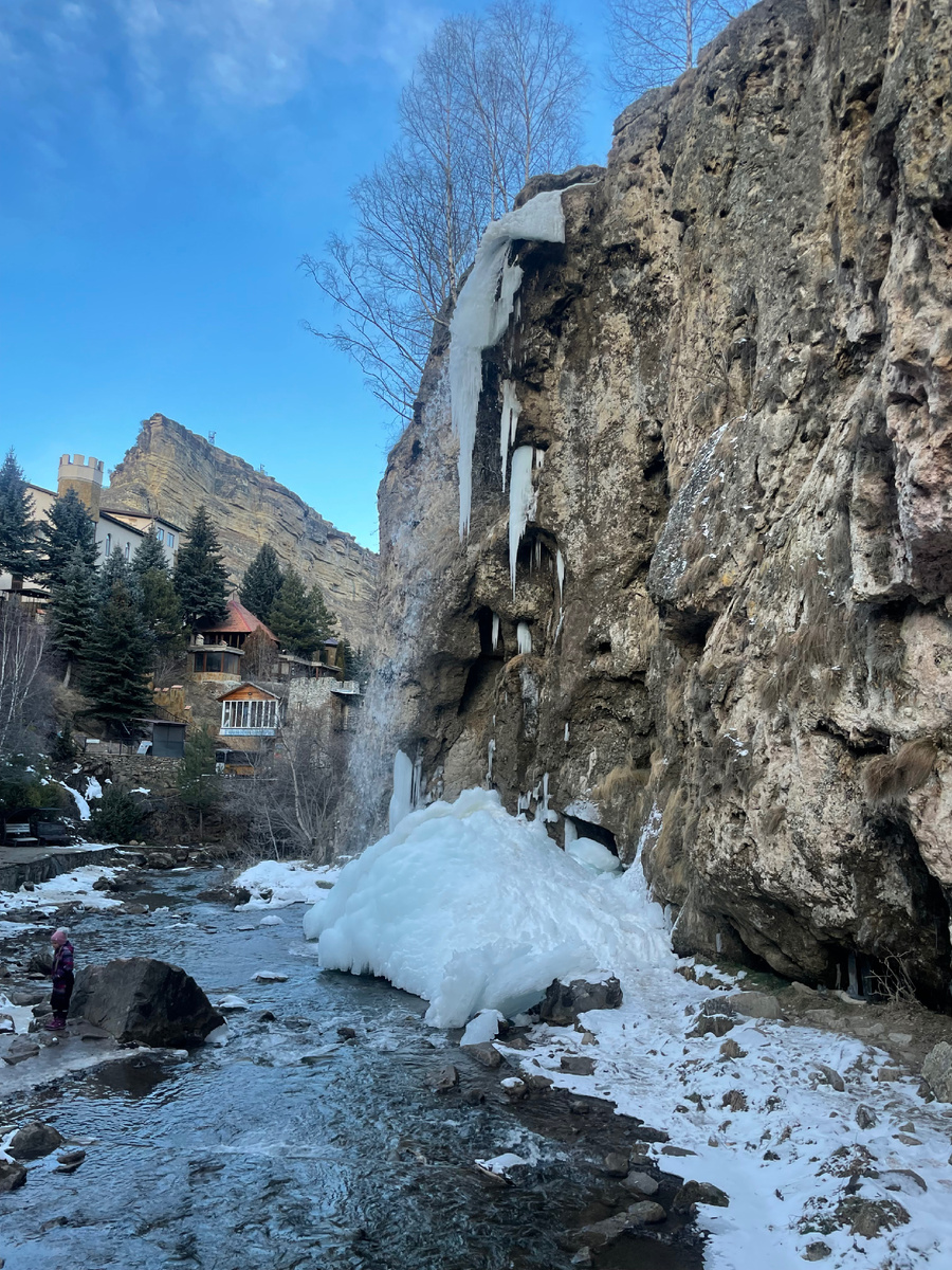 «После долгой дороги и прогулки по ущелью мы погрузились в ванну из камня, где вода была градусов 40. Над нами звёзды, вокруг — горы, воздух +5, а мы греемся. Никогда не думала, что такие ощущения возможны в России».