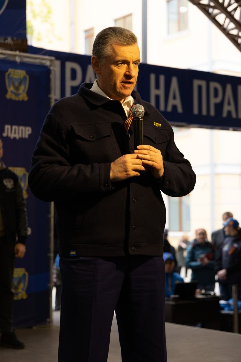 9 мая, на митинге в честь 80-летия Победы, Председатель ЛДПР Леонид Слуцкий поздравил присутствующих с днём Победы.
