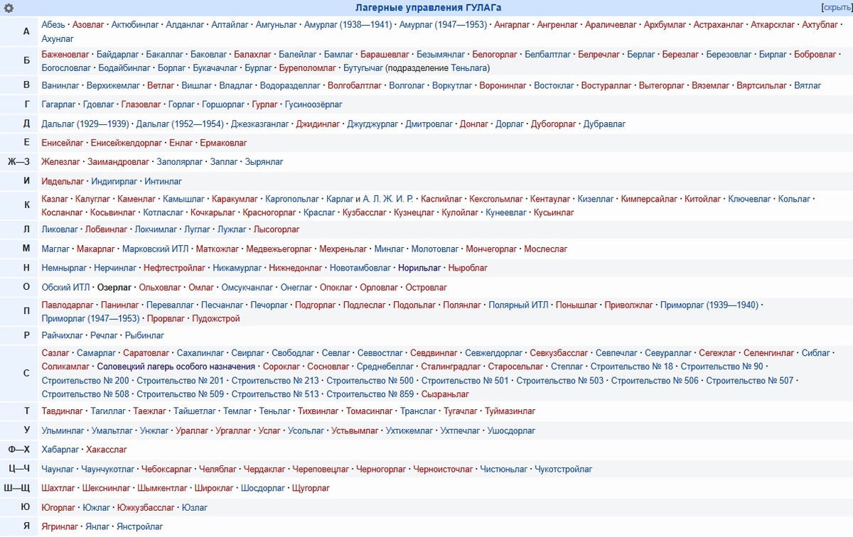 В системе управления лагерей на Википедии указано 427 мест заключений.