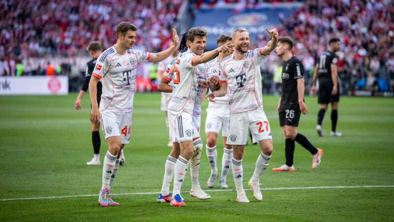 Мюнхенская «Бавария» победила менхенгладбахскую «Боруссию» в матче 33‑го тура чемпионата Германии. Встреча в Мюнхене завершилась со счетом 2:0. Мячи забили Харри Кейн и Майкл Олисе. Это последняя домашняя игра за «Баварию» для нападающего Томаса Мюллера и защитника Эрика Дайера. Перед стартовым свистком футболисты получили памятные подарки. Досрочно завоевавшая чемпионство «Бавария» набрала 79 очков, «Боруссия» (45) идет девятой. В паралельных матчах «Фрайбург» на выезде победил «Хольштайн Киль» (2:1), «Унион» дома уступил «Хайденхайму» (0:3), «Вердер» на своем поле сыграл вничью с «Лейпцигом» (0:0), а «Майнц» в гостях разгромил «Бохум» (4:1). «Хольштайн» (25 очков) и «Бохум» (22) лишились шансов остаться в элитном дивизионе чемпионата страны на следующий сезон. Прямые трансляции матчей Бундеслиги смотрите на каналах группы «Матч», а также сайтах matchtv.ru и sportbox.ru. «Бавария» (Мюнхен) — «Боруссия» (Менхенгладбах) — 2:0 (1:0) Голы: Кейн, 31 (ВИДЕО). Олисе, 90 (ВИДЕО). «Хольшта