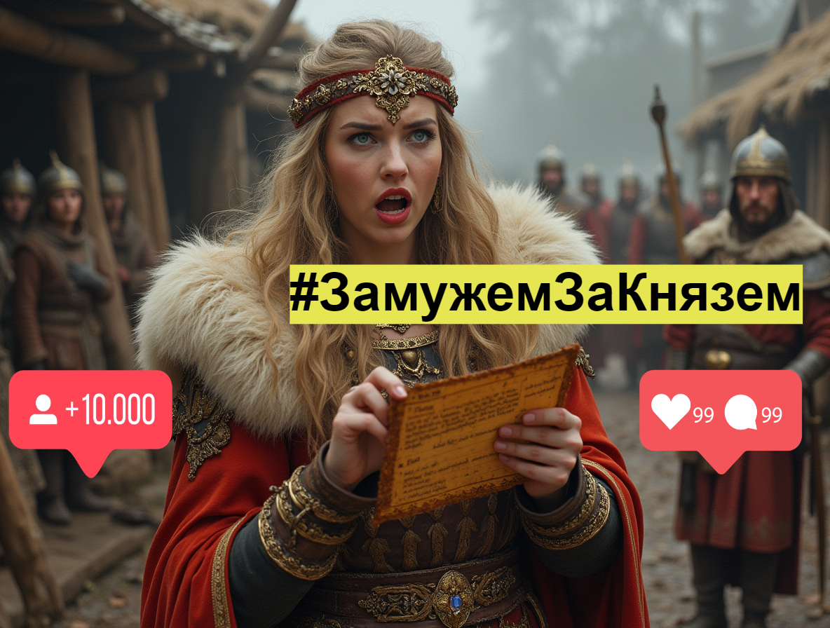 «Большие новости, друзья! Мой Рюрик получил приглашение стать князем в стране под названием Гардарика (славяне называют её Русью). Говорят, там красивые леса, много мёда и странные люди, которые никак не могут договориться между собой. Прям как наши скандинавские родственники после пятой кружки медовухи! 😂 Переезжаем в следующем месяце, ура-ура! #НоваяЖизнь #КнягиняЯ #ПереездНеравенДвумПожарам»