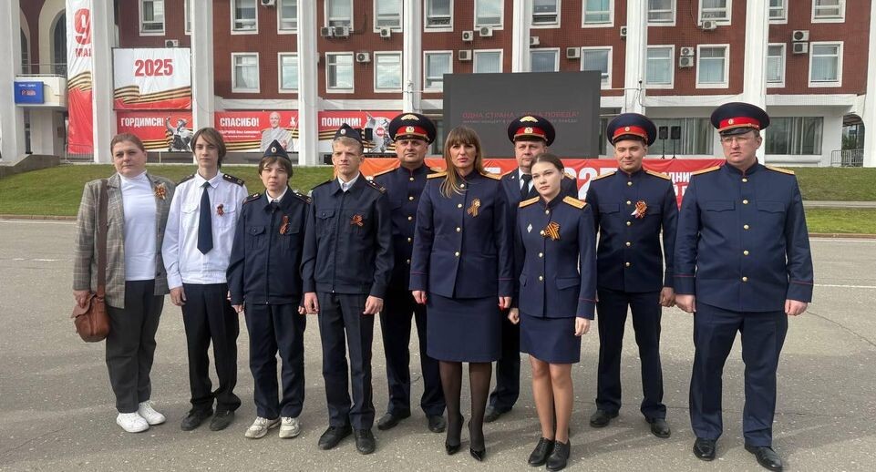 К просмотру присоединились кадеты, ветераны и другие почетные гости. Каждому на митинг-концерте вручили георгиевские ленты.