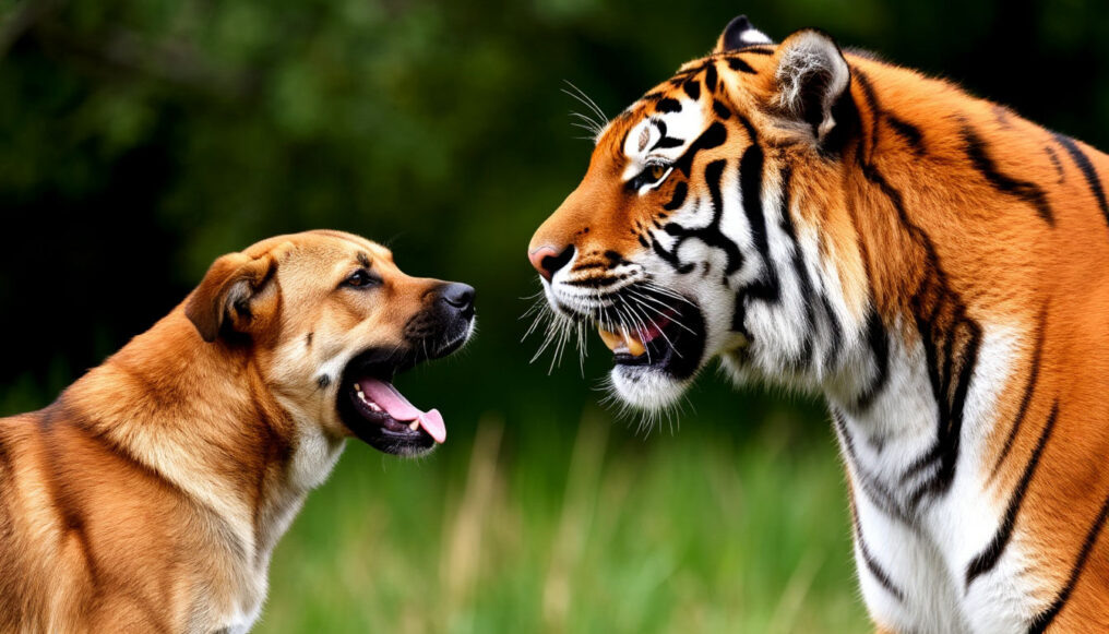 Дома пёс резвится, прыгает, виляет хвостом. Но стоит ему впервые увидеть тигра — и вот он уже дрожит от ужаса, а иногда и буквально «писается от страха». Это явление часто называют «генетическим подавлением», как будто страх перед тигром закодирован у собаки в крови. Но почему собака, никогда не сталкивавшаяся с тигром, испытывает такую сильную реакцию? Что стоит за этим с научной точки зрения? Собаки произошли от волков и живут рядом с человеком примерно от 20 до 40 тысяч лет. Хотя домашние собаки никогда не встречались с тиграми, при виде крупных кошачьих у них часто проявляется острая стрессовая реакция: учащённое сердцебиение, поднятая шерсть, поджатый хвост, а порой и неконтролируемое мочеиспускание. Это не просто испуг — это врождённый механизм «бей или беги», запускаемый вегетативной нервной системой и сопровождающийся выбросом адреналина. На первый взгляд, всё очевидно: тигр — крупный, грозный, настоящий хищник высшего уровня. Но настоящая причина кроется глубже — в инстинктивн