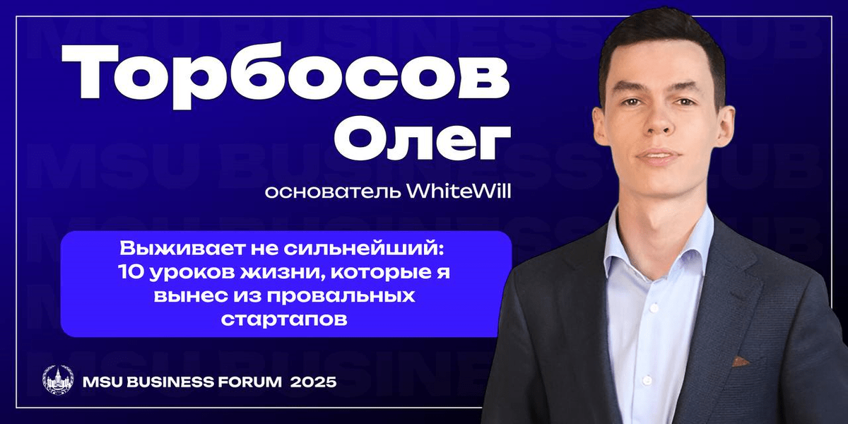 Олег — предприниматель, бизнес-консультант, основатель Whitewill — ведущего агентства недвижимости, а также сервиса для онлайн-оценки персонала Hrscanner. Его путь — это история амбиций, провалов, перезапусков и побед. 💙 В 2015 году он основал Hrscanner, рекрутинговую компанию Hrpartners и журнал Moscow City Guide. Годом позднее создал агентство недвижимости Whitewill, которое сейчас работает в Москве, Лондоне, Дубае и Майами. 💙 Whitewill считается одной из самых быстрорастущих компаний в сфере премиальной недвижимости. Они продают не квартиры — они создают опыт, влюбляют клиента в продукт и лакшерный сервис 🤑 Что делает Олега особенным? 1Он не боится провалов — именно они научили его выигрывать. 2Он строит бизнес, опираясь на холодную аналитику, глубокую эмпатию и высокий уровень обслуживания. Олег Торбосов выступит с темой: «10 уроков жизни: как провальные стартапы научили меня жить». Это будет выступление, которое вдохновит, встряхнёт и даст инструменты. Никакой воды. Только опыт