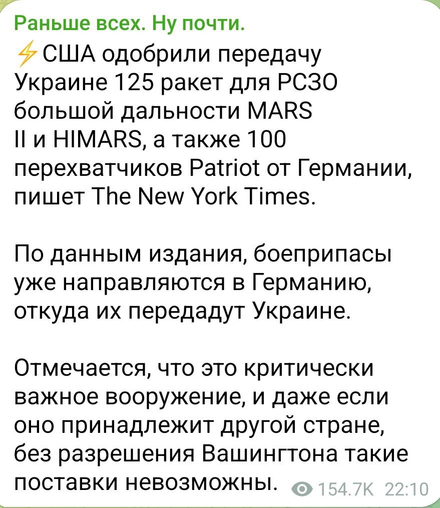 Я же говорю, Трамп с ними заодно. Играет в доброго полицейского, а европейцы взяли себе неблагодарную роль быть злыми полицейскими. Всё тоже самое, что и все предыдущие три года, только хрен в анфас. Поэтому ловите самое главное доказательство и явный разведпризнак. Партнёры, переговорщики, посредники и прочая мутатень никогда бы не стали продолжать накачивать вооружением ни одну из конфликтующих сторон, ну это при условии реальной заинтересованности переговорщиков в настоящем мирном процессе. А вот так поступают настоящие враги, самые эталонные, высшей пробы. На что рассчитывает Трамп, я хз, но в России он уже точно за миротворца себя не выдаст.