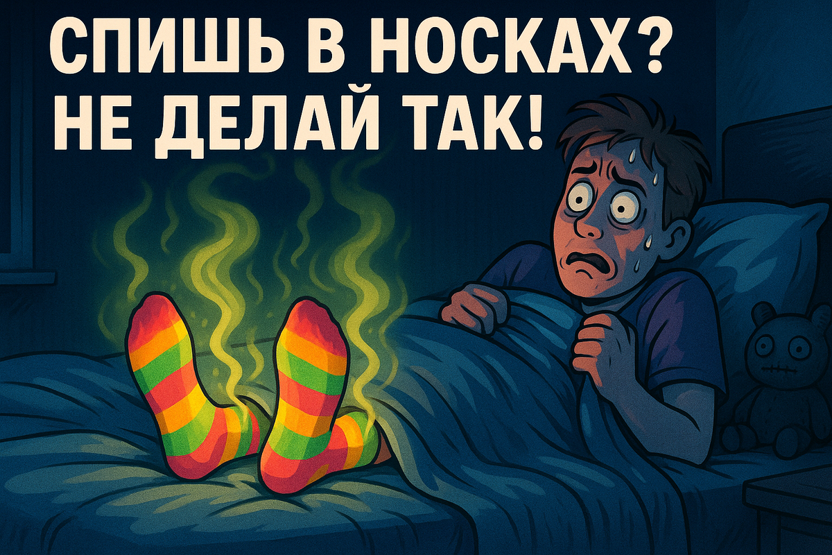 👉 Если стопы в жаре — мозг думает, что ты ещё бодрствуешь. Плотные или синтетические носки пережимают сосуды, особенно ночью.