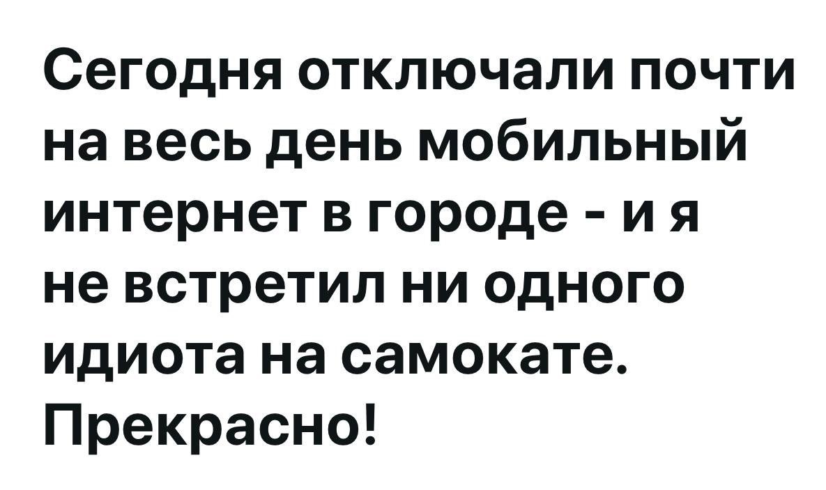 Плюсы отключения интернета в городе. Предлагаю продлить акцию)))