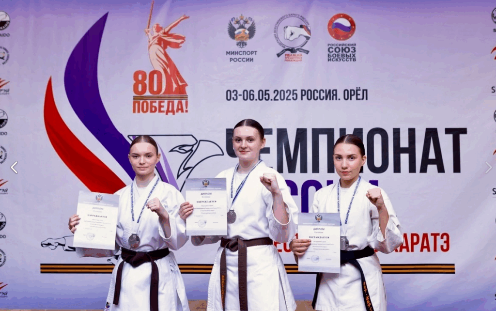 С 1 по 6 мая 2025 года в городе Орле прошло значимое событие в мире боевых искусств – Первенство и Чемпионат России по всестилевому каратэ, посвященные 80-й годовщине Великой Победы. Мероприятие собрало более 1000 спортсменов из 49 регионов на Первенстве и 564 участника из 50 регионов на Чемпионате, демонстрируя высокий уровень состязаний и сплоченность каратэ-сообщества. Достижения наших спортсменов Победа Головко Богдана 2 и 3 апреля 2025 года Головко Богдан показал впечатляющий результат, став чемпионом на первенстве России по всестилевому каратэ. Он завоевал две золотые медали в кумитэ и ката, что стало феноменальным достижением для нашего региона и РФ. Его усердие и преданность спорту принесли заслуженные плоды, и теперь Богдан входит в состав молодежной сборной команды России.